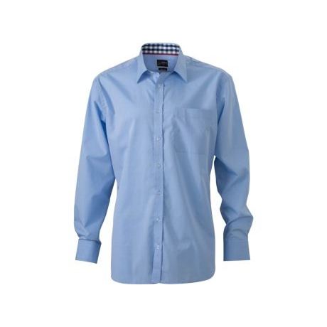 Men's Stylish Chinese Style Shirt 100% Cotton Smart Casual with Check Inserts on Collar and Cuff for Spring Summer