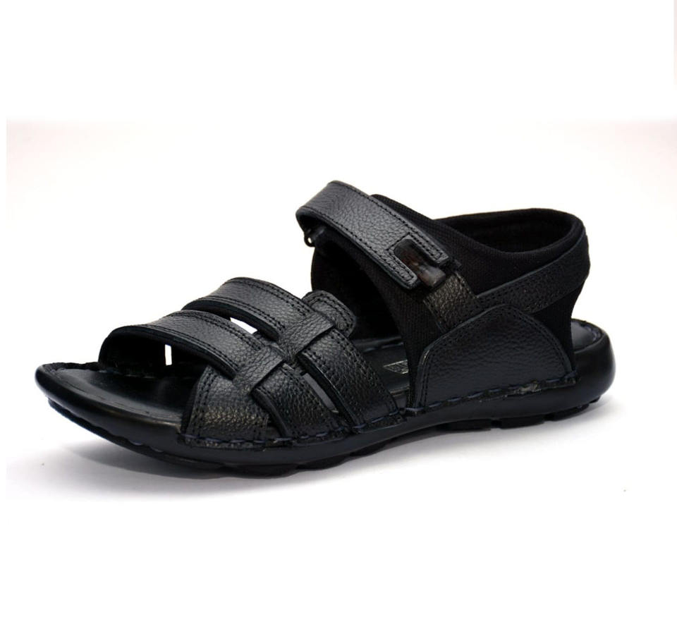 Men's Stylish & Durable Leather Outdoor Sandals with Hook & Loop Fasteners Ideal for Travel & Leisure Wholesale OEM Custom Logo
