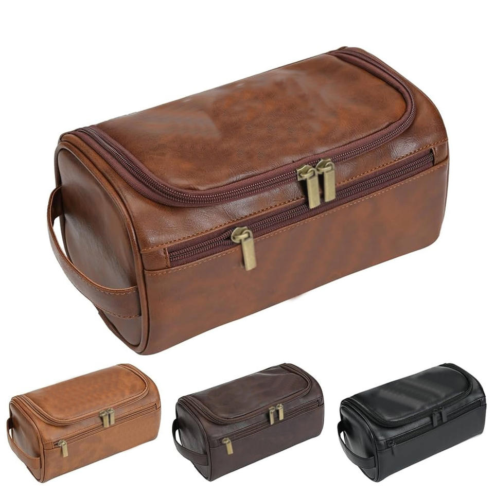 Men's Stylish Foldable Genuine Leather Cosmetic Bag High Quality for Case Zipper Closure Large Capacity Fashionable Soft
