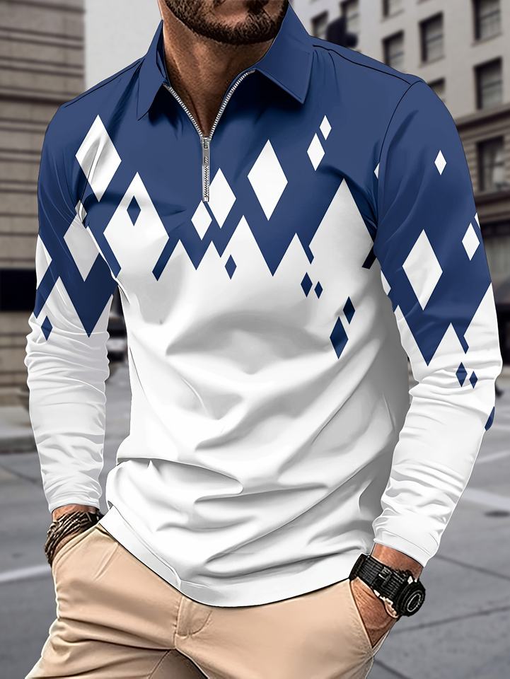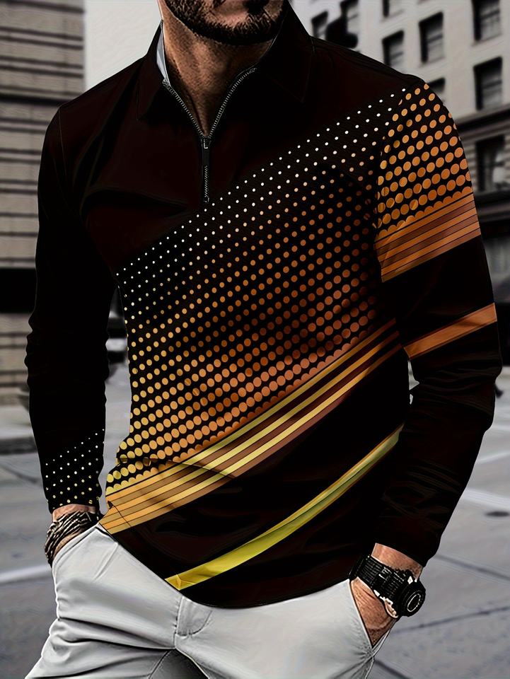 Men's Stylish Long-Sleeved for Polo Shirt Breathable Knitted Fabric 3D Versatile Fashionable Exudes Elegance for Casual