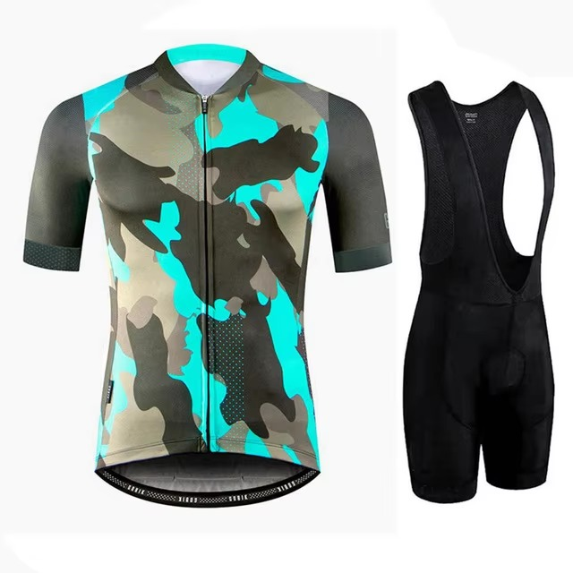 Men's Sublimated Cycling Jersey Sets Zipper Pocket Bike Bib Shorts with Pockets Sublimated Cycling Uniform