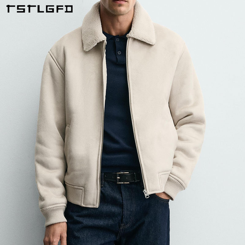 Men's Denim Jacket-Eco-Friendly Faux Fur Collar Waterproof Reversible Winter Jacket for Autumn/Winter Timeless Warmth Front Logo
