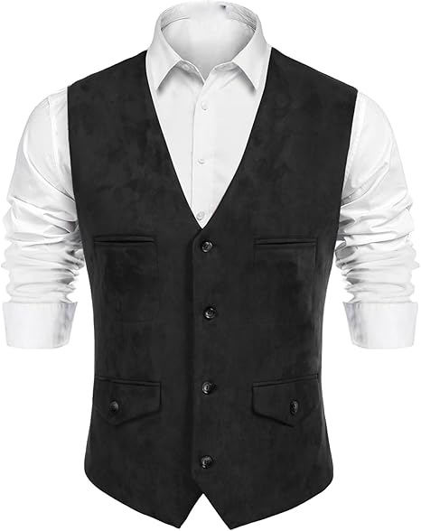 Men's Suede Leather Vest Vintage Cowboy Style Suit Vest Waistcoat With Chest Pockets