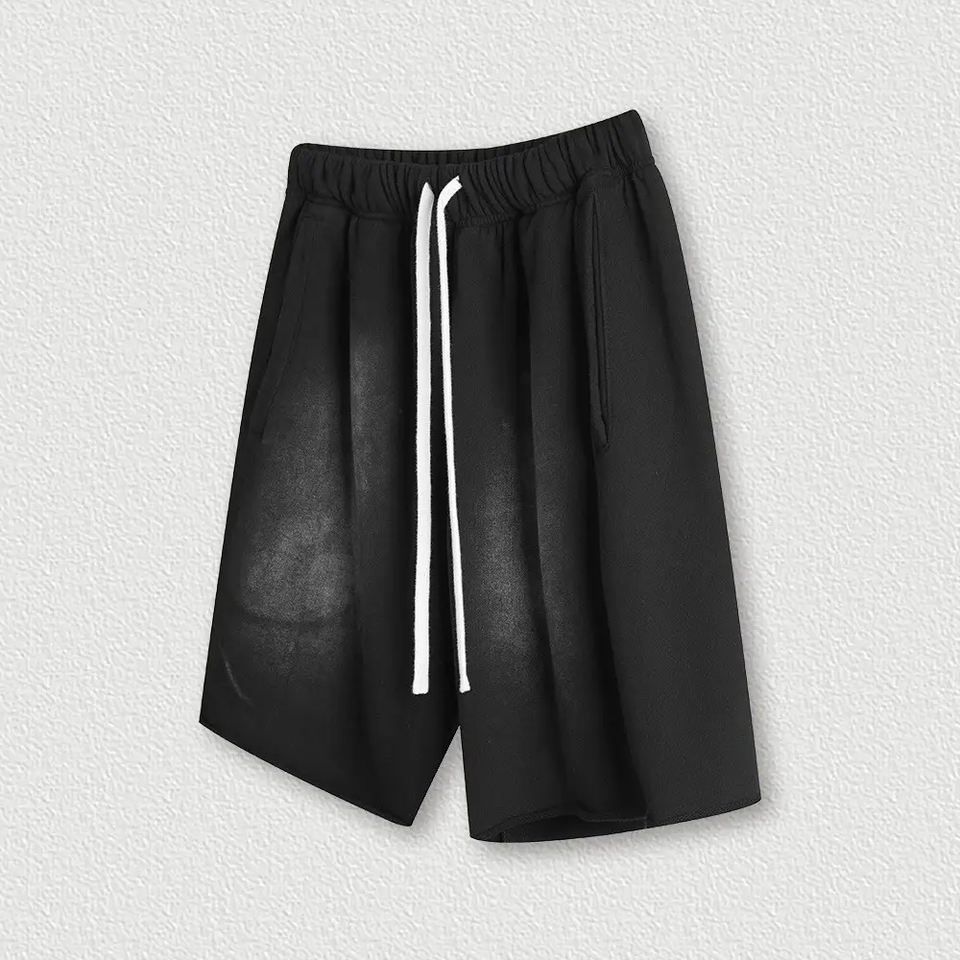 High Street Men's Summer Acid Wash Print Shorts 100% Cotton French Terry Style Fashionable Breathable OEM Drawstring Service