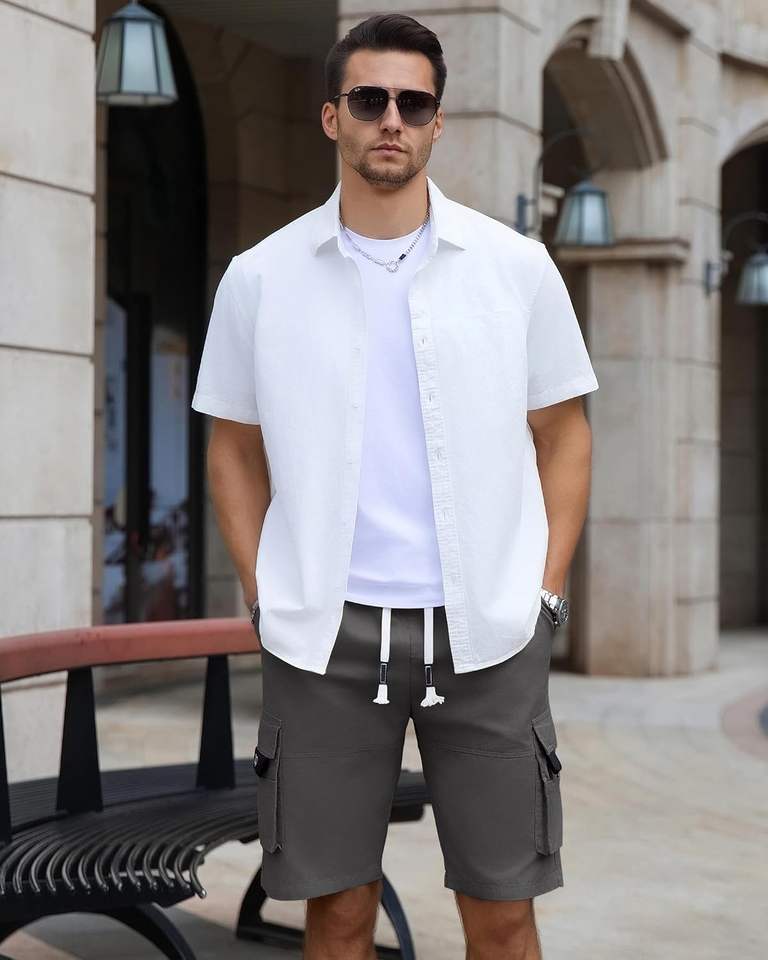 Men's Summer Casual Cotton Cargo Shorts Elastic Waistband Drawstring with Relaxed Fit OEM Service Big & Tall Work Shorts