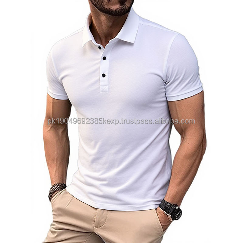 Men's Summer Casual Short Sleeve T-Shirt Solid Color Embroidered Collar for Polo Leopard Pattern Knitted Fabric ODM Supply