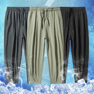 Men's Summer Cool Khaki Jogger Pants 9-Part Ice Cooling Trousers