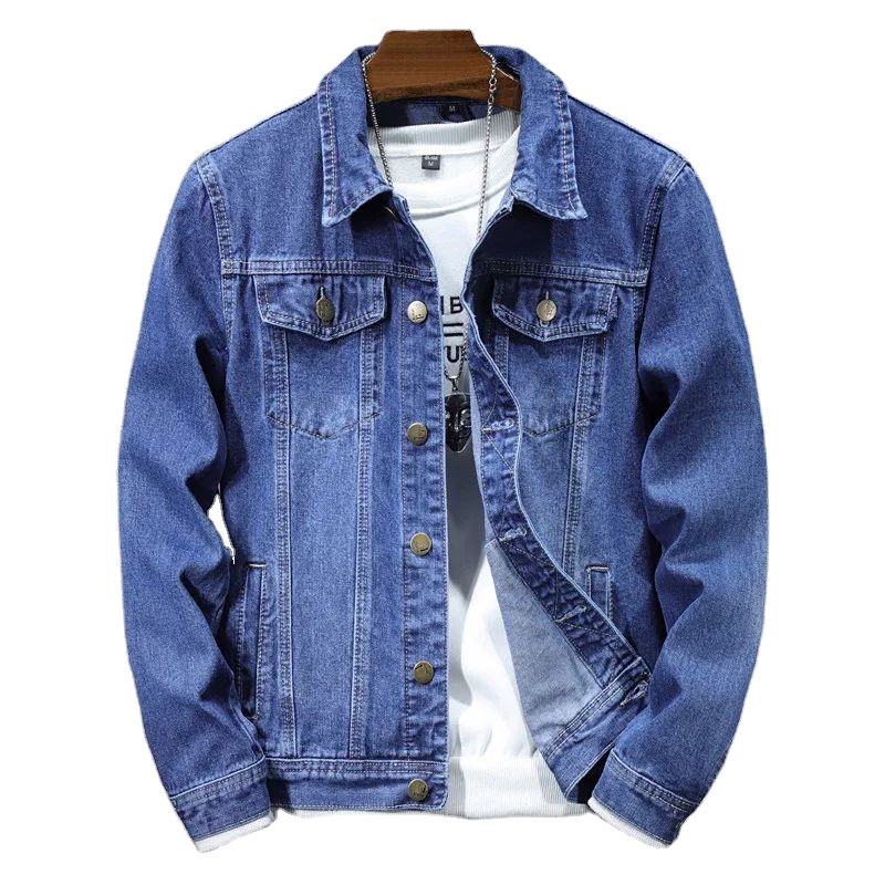 Men's Summer Daily Casual Coats New Single-Breasted Lapel Denim Jacket with Pure Colour Front Logo Canvas Fabric