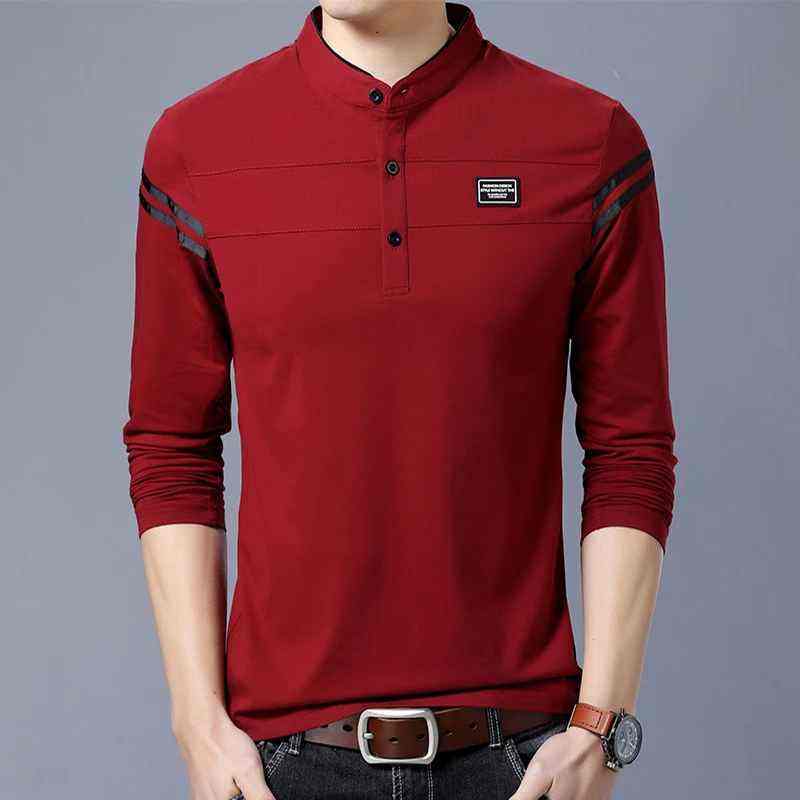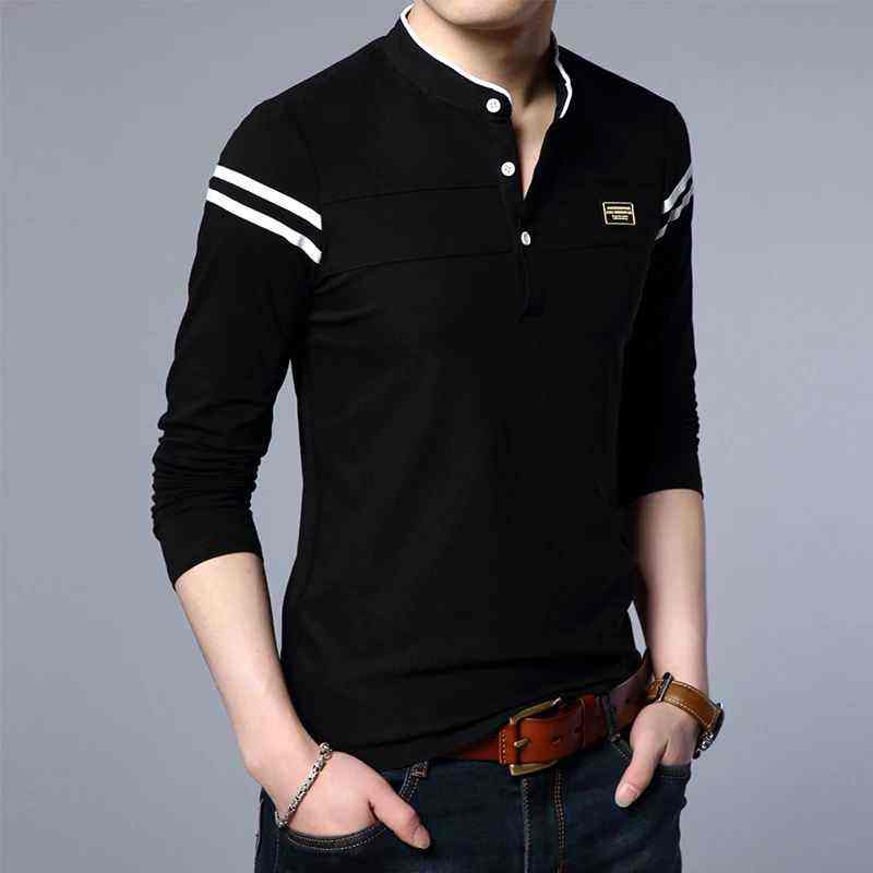 Men's Summer Fashion Printed for POLO T-shirt Casual Cotton Breathable Long Sleeve Top with Stand Neck Comfortable Shirt