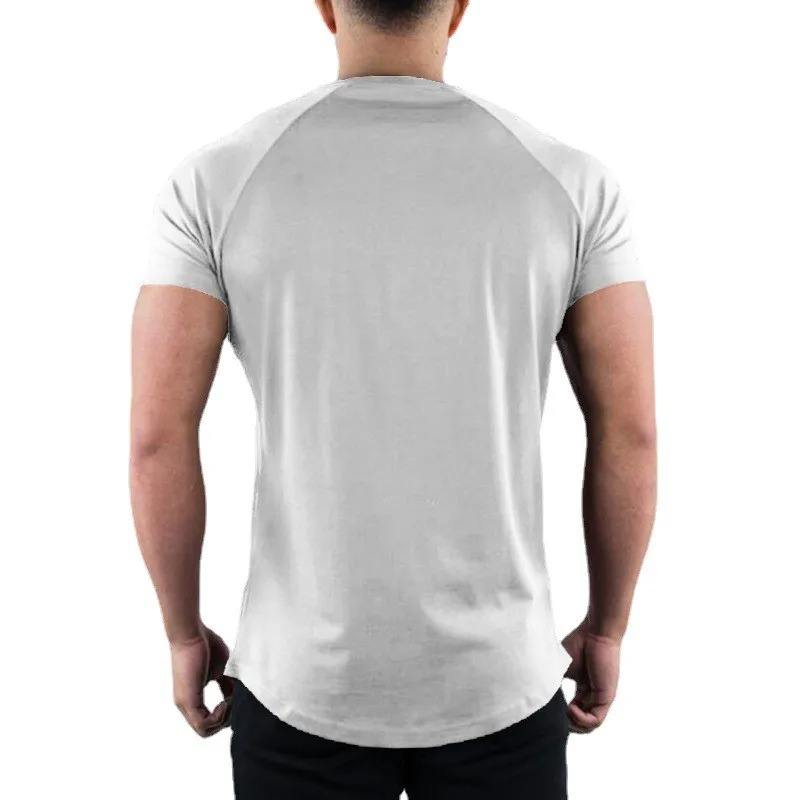 Men's Summer Fitness Gym T-Shirt O-Neck Short Sleeve Cotton Slim Fit Bodybuilding Workout Tops