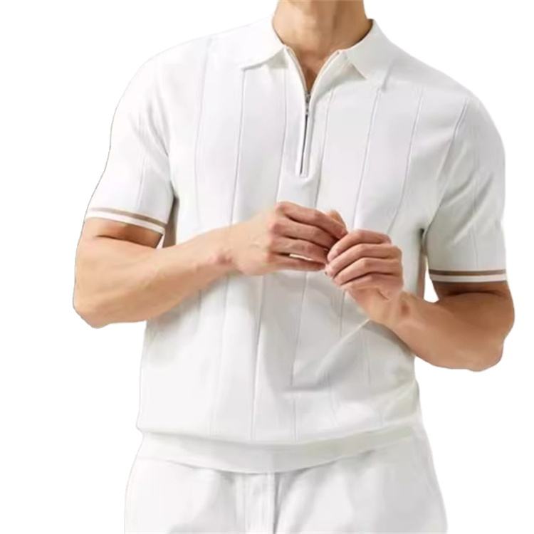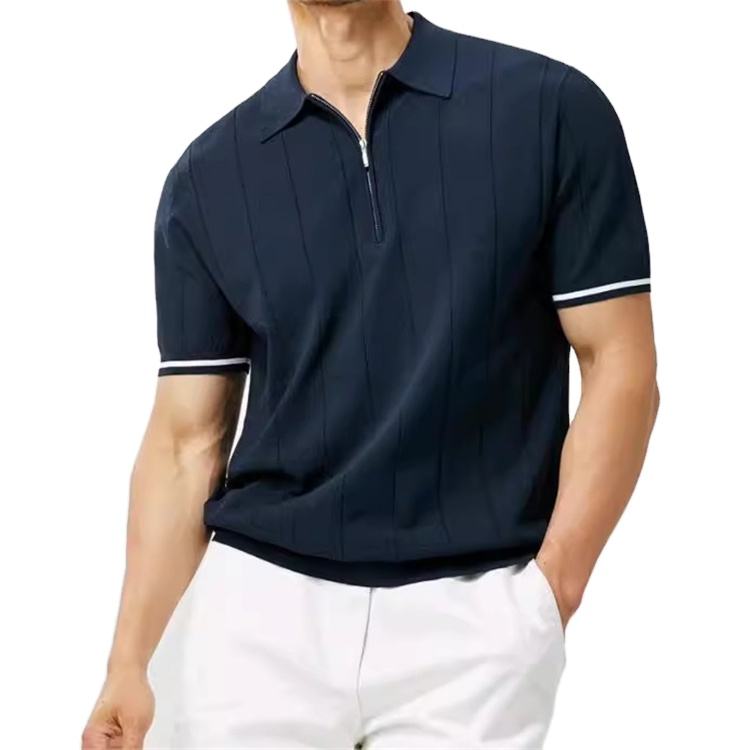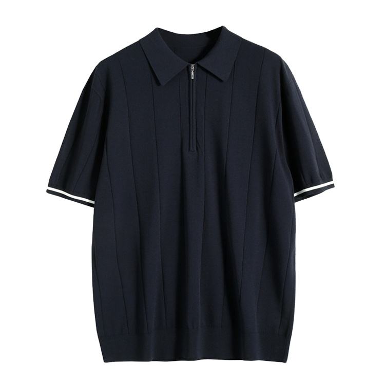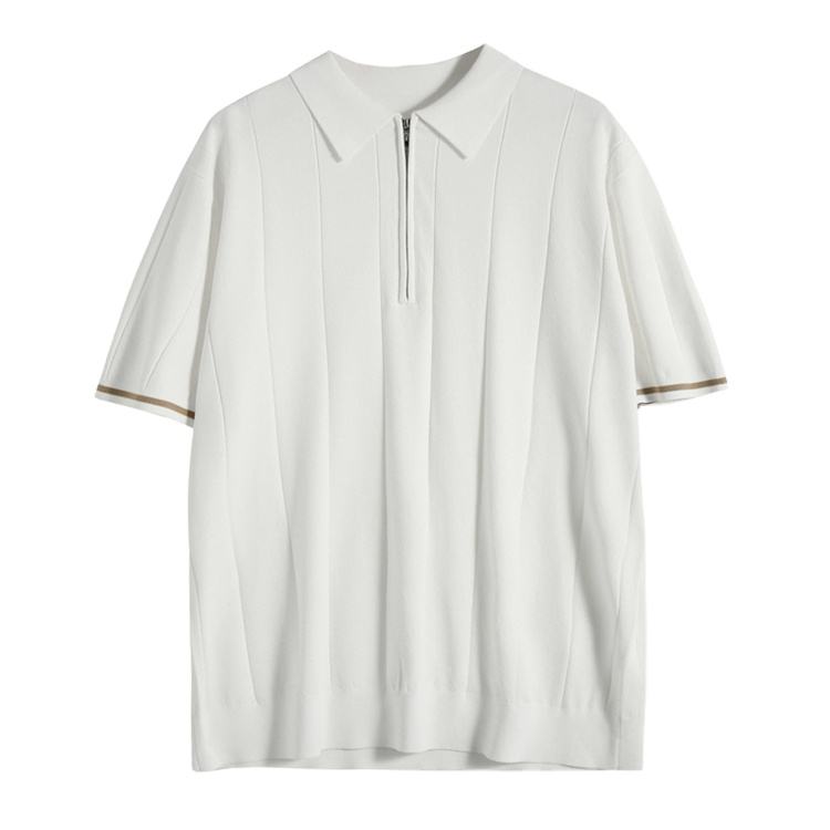 Men's Summer Half Zip Polo Shirt Casual Ice Silk Short Sleeve Knit T-Shirt with Solid Pattern Canvas Turtleneck Collar