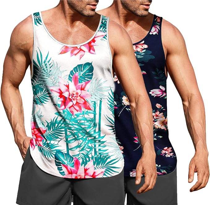 Men's Summer Hawaiian Beach Tank Tops Custom Logo Surfing Swim Vests Digital Sublimation Printed Plus Size Options