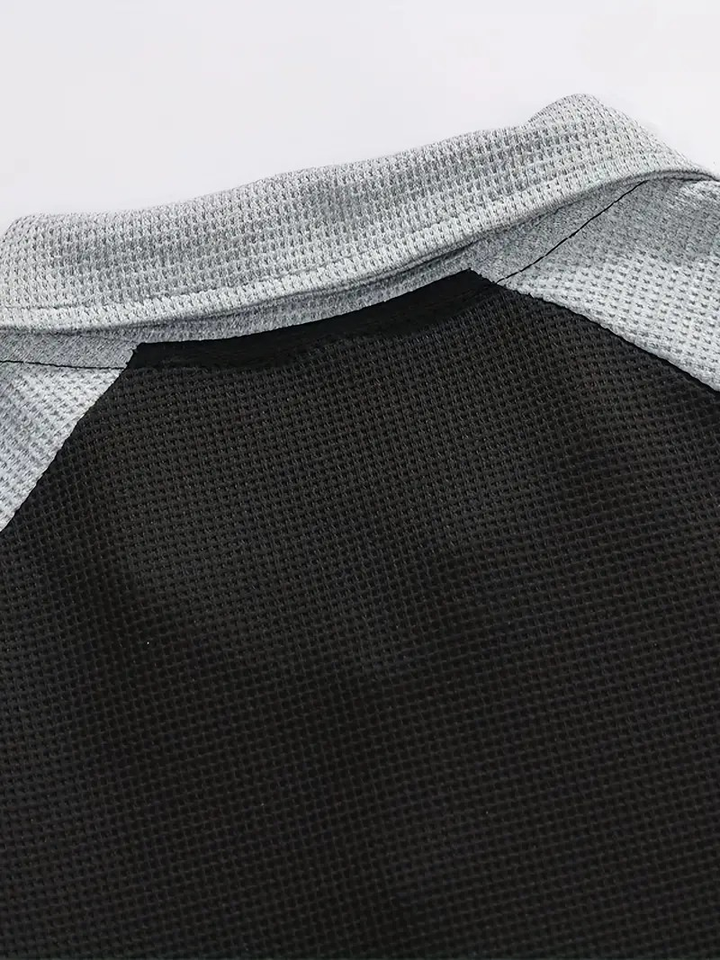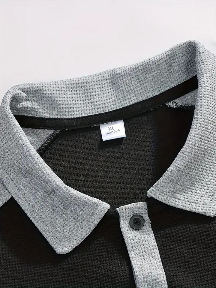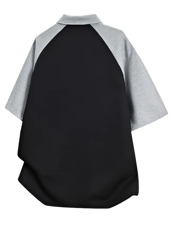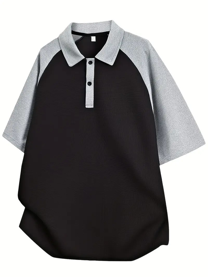 Men's Summer Short Sleeve Anti-Wrinkle Solid Shirt Breathable Knit Fabric Contrast Collar Button Design Regular Fit Golf Tennis