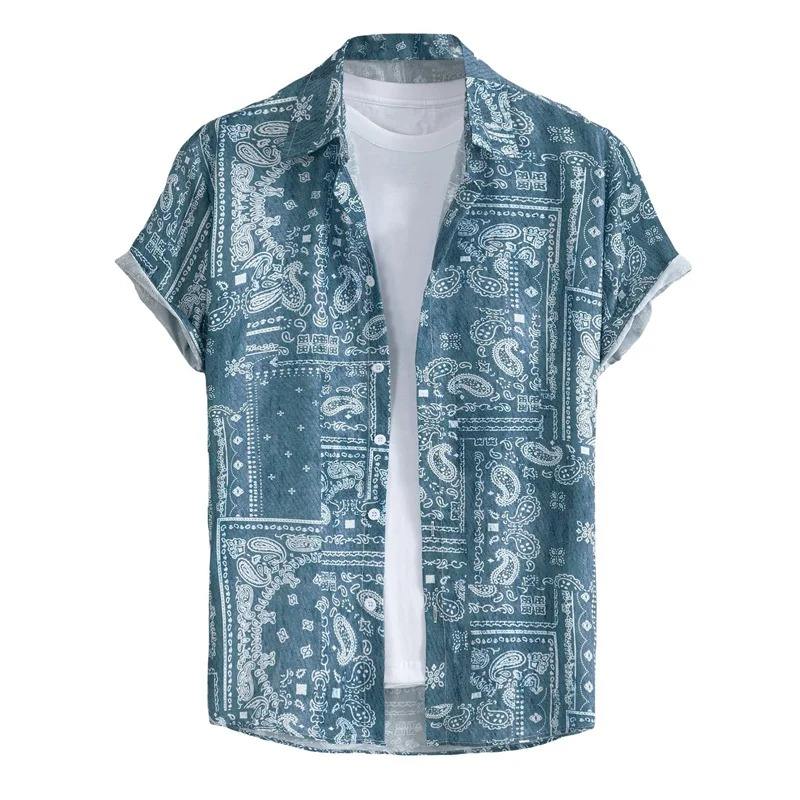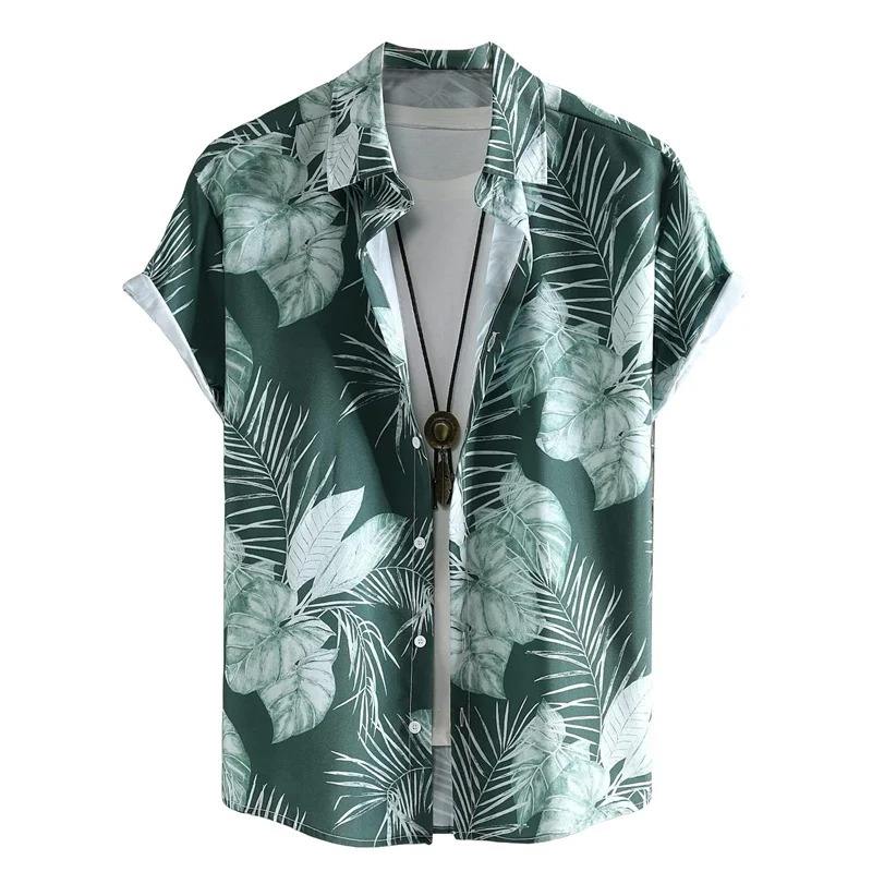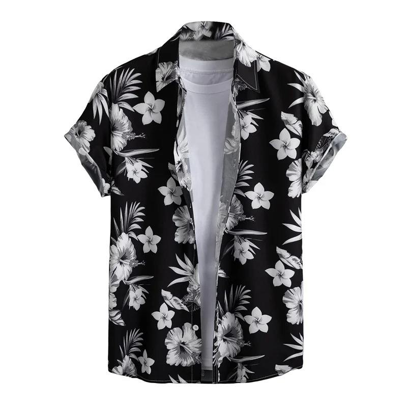Men's Summer Short-Sleeved Button-Down Blouse 3D Printed Flowers and Plants Covered Button Closure Beach Tops Clothes