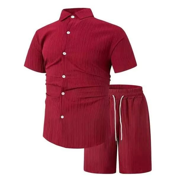 Men's Summer Simple Casual Beach Wear Two-Piece Cardigan With Printed Button-Up Long-Sleeved Polyester Shirt Woven Shorts