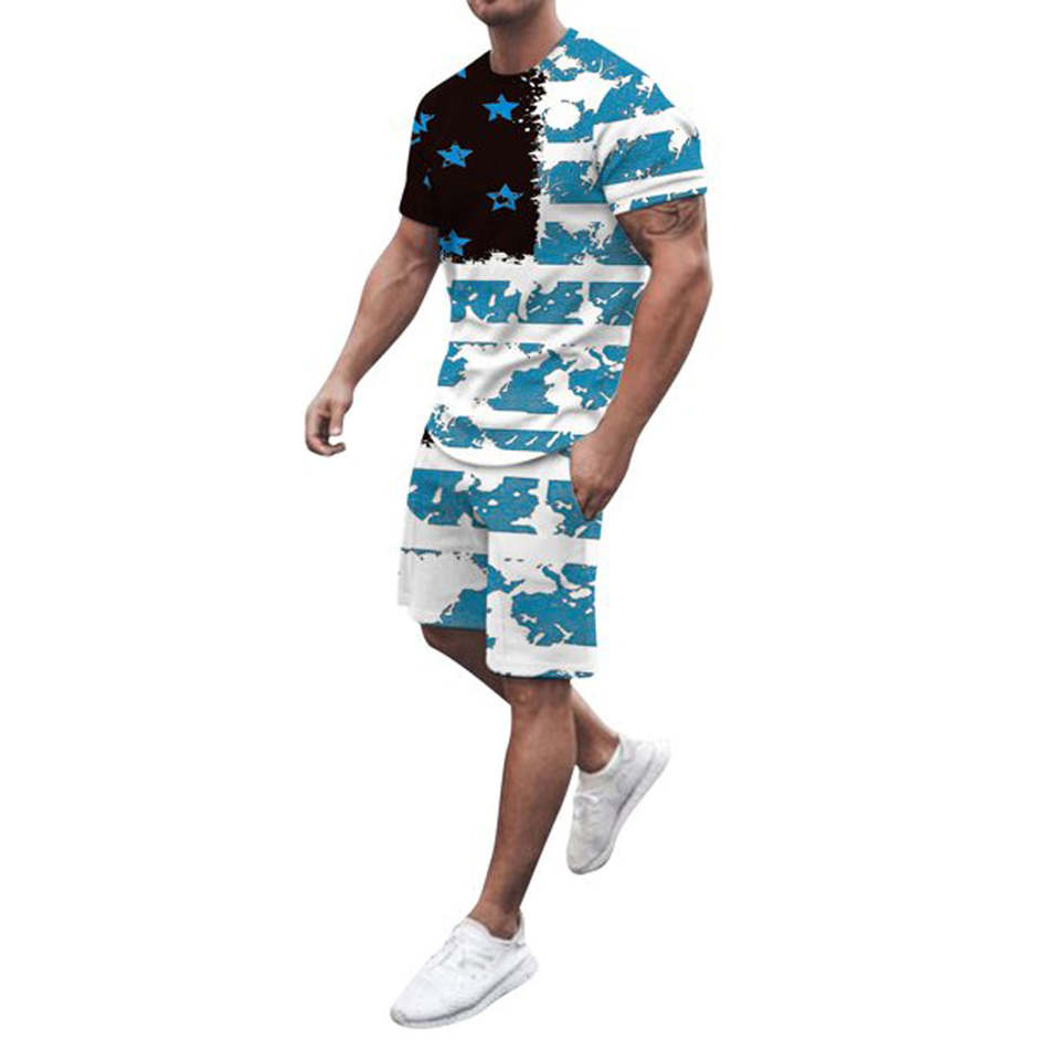 Men's Summer Smart Casual 2-Piece Set Quick Dry Cotton Breathable Printed T-Shirt Matching Shorts OEM ODM Services Available