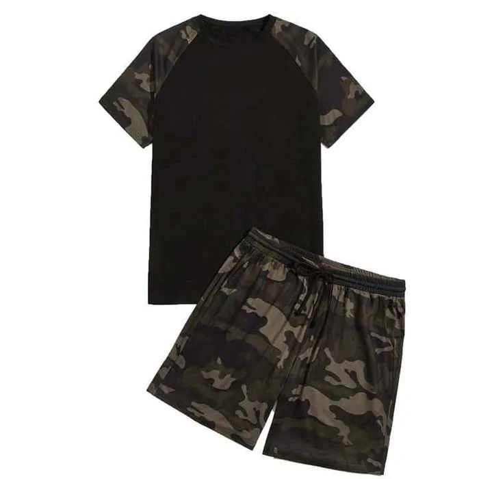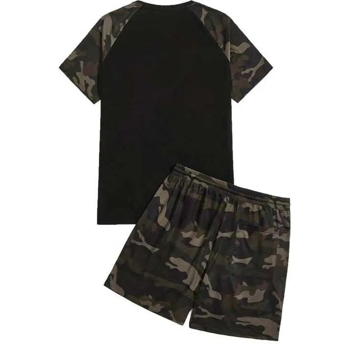 Men's Summer Sportswear Suit Camo Print Short Sleeve T-Shirt & Drawstring Waist Shorts Set Plus Size 2 Piece Tracksuits
