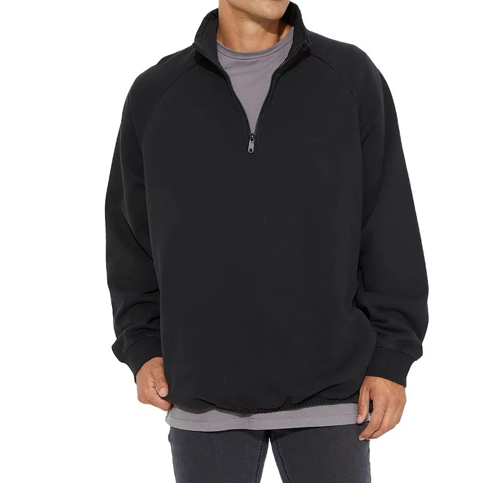 Men's 100% Cotton Half Zip Fleece Pullover Sweatshirt Printed Polos Shirts with Long Sleeves Cropped Style