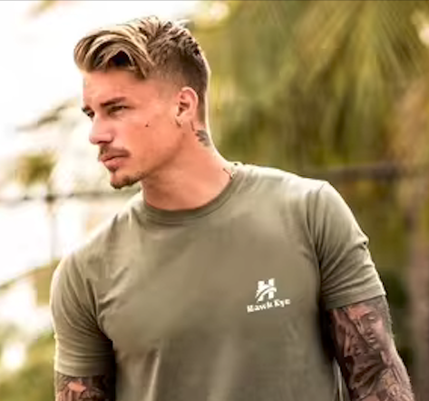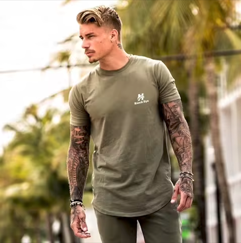 Men's T-shirt in the Khaki Olive Green Color Slim Fit Round Bottom Cotton Moisture-Wicking Crew Tee Shirt