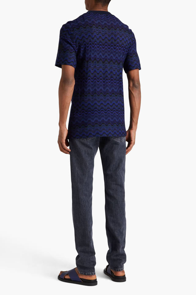 Men's T-shirts Modern Designer for Men with Psychedelic Wavy Pattern in Blue and Black Short Sleeves Crew Neck and Casual Fit