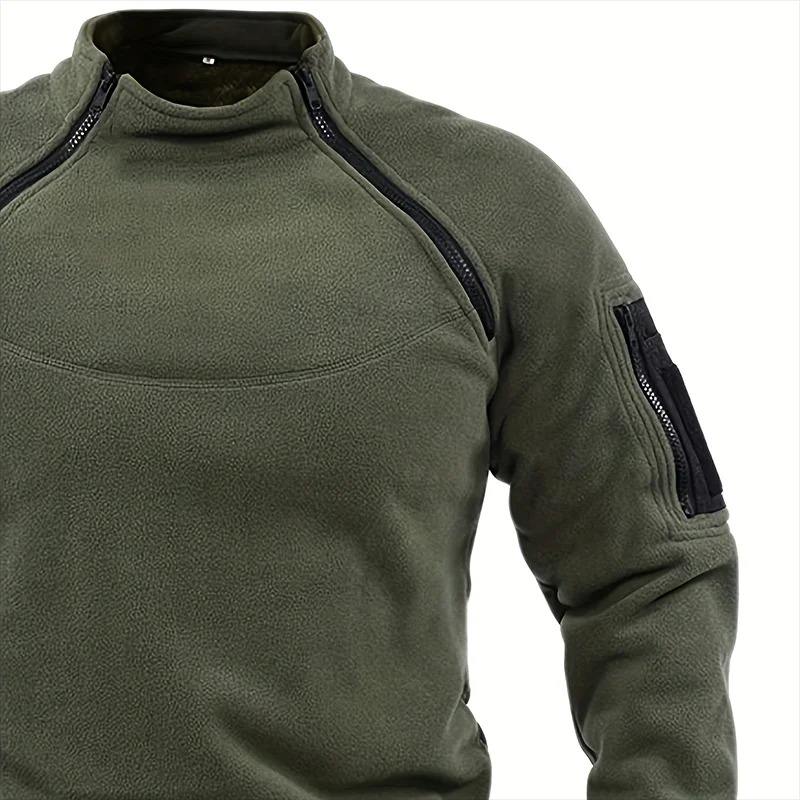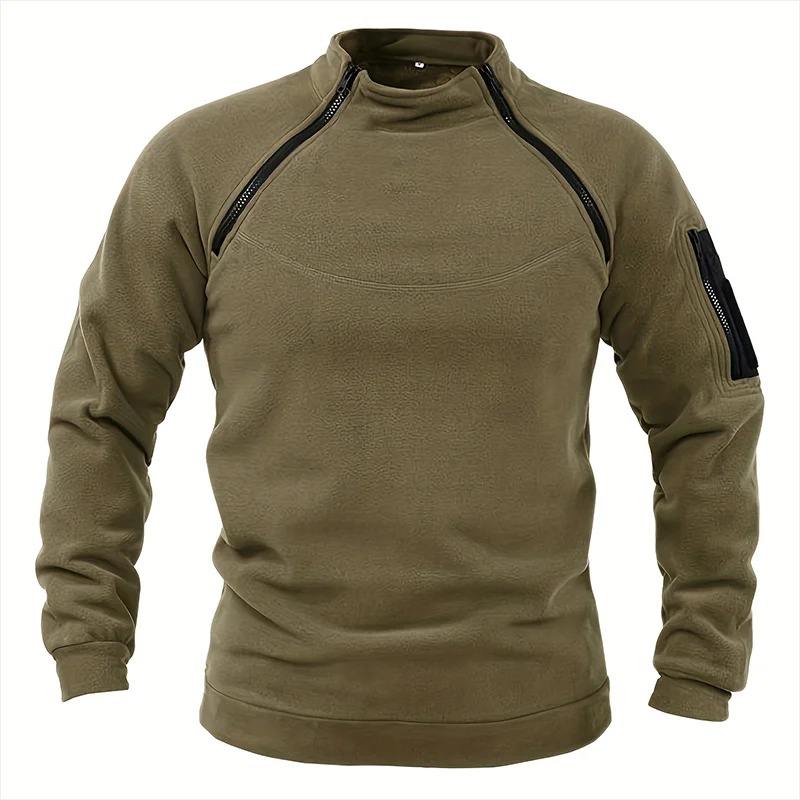 Men's Casual Solid Color Tactical Pullover Fleece Jacket with Windproof Standing Collar Hoodies for Autumn Wear