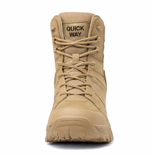 Men’s Tactical Work Boots 8-Inch Side Zip Leather Outdoor Hiking Boots