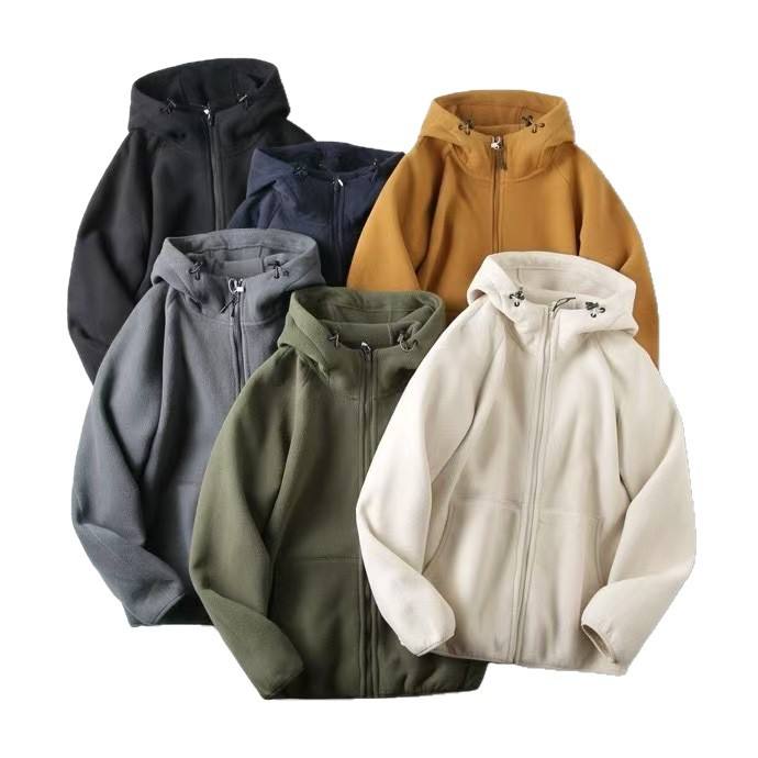Men's Thick Fleece Hooded Jacket Windproof Zip Up Straight Hem Leisure Wear With Label And Tags