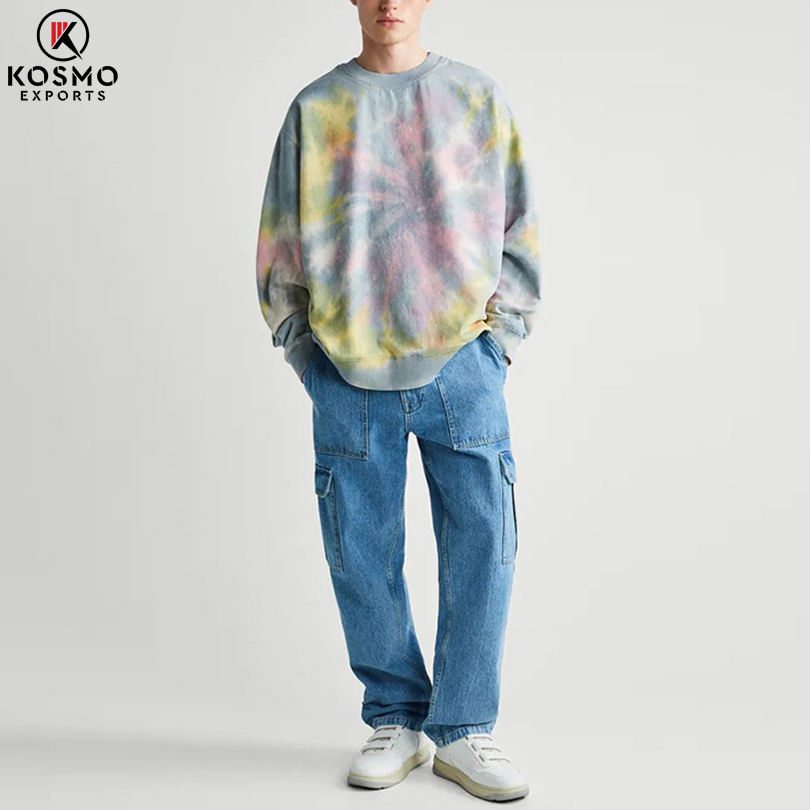 Men's Tie Dye Sweatshirt New Design Lightweight Cotton Breathable and Quick Dry Long Length Winter Fleece Sweatshirt