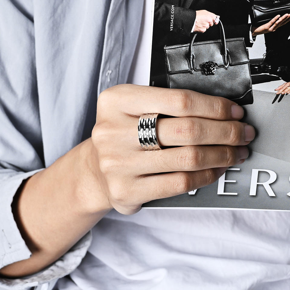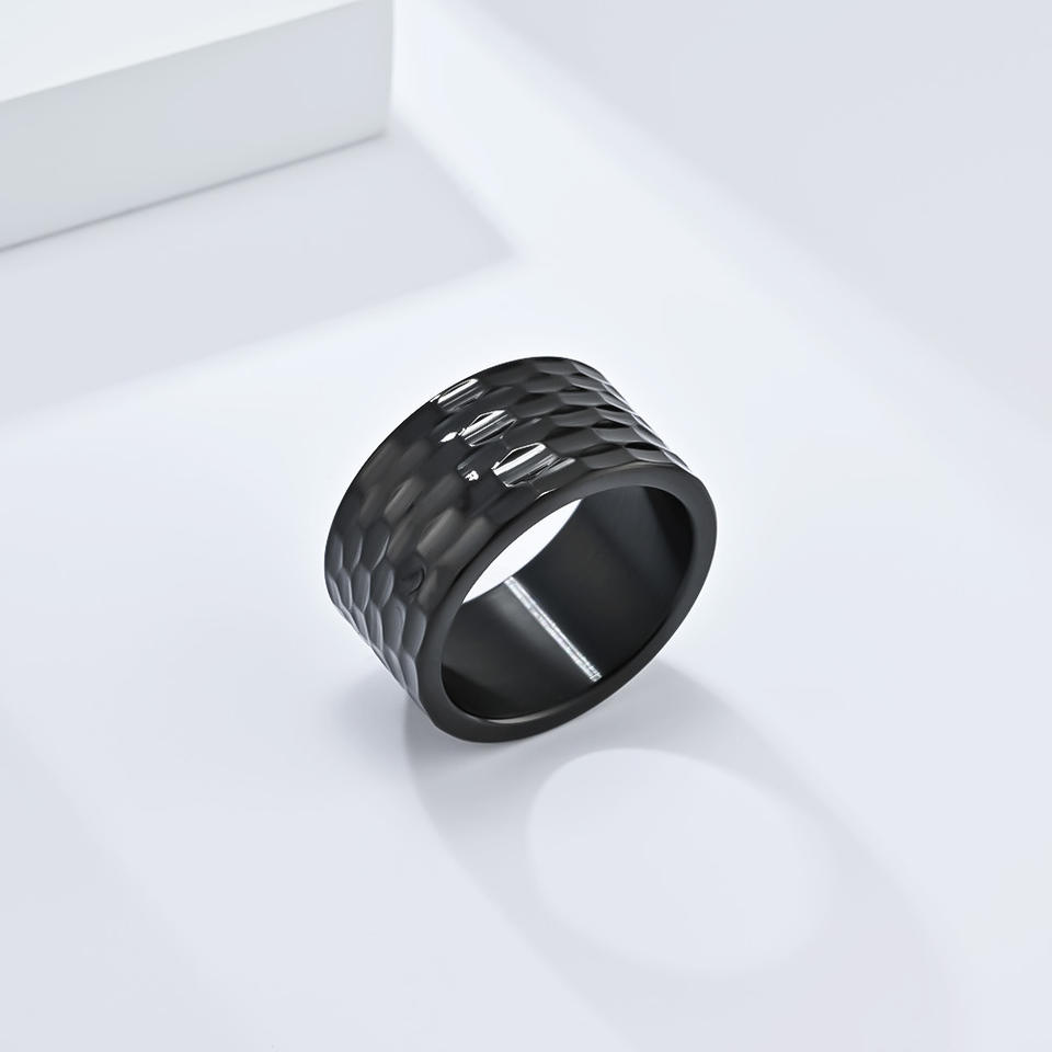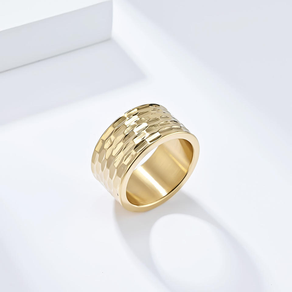 Men's Titanium Steel Rings Geometric Honeycomb Texture Gold Black Silver Gift Jewelry
