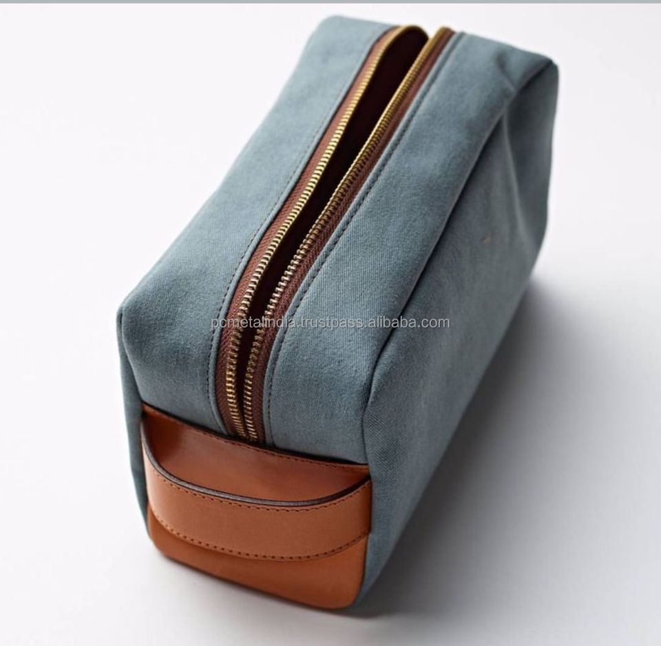 Men's Toiletry Bag Leather and Canvas Travel Toiletry Bag/Dopp Kit for Men Shaving Bag for Travel/Accessories Mens Toiletry Bag