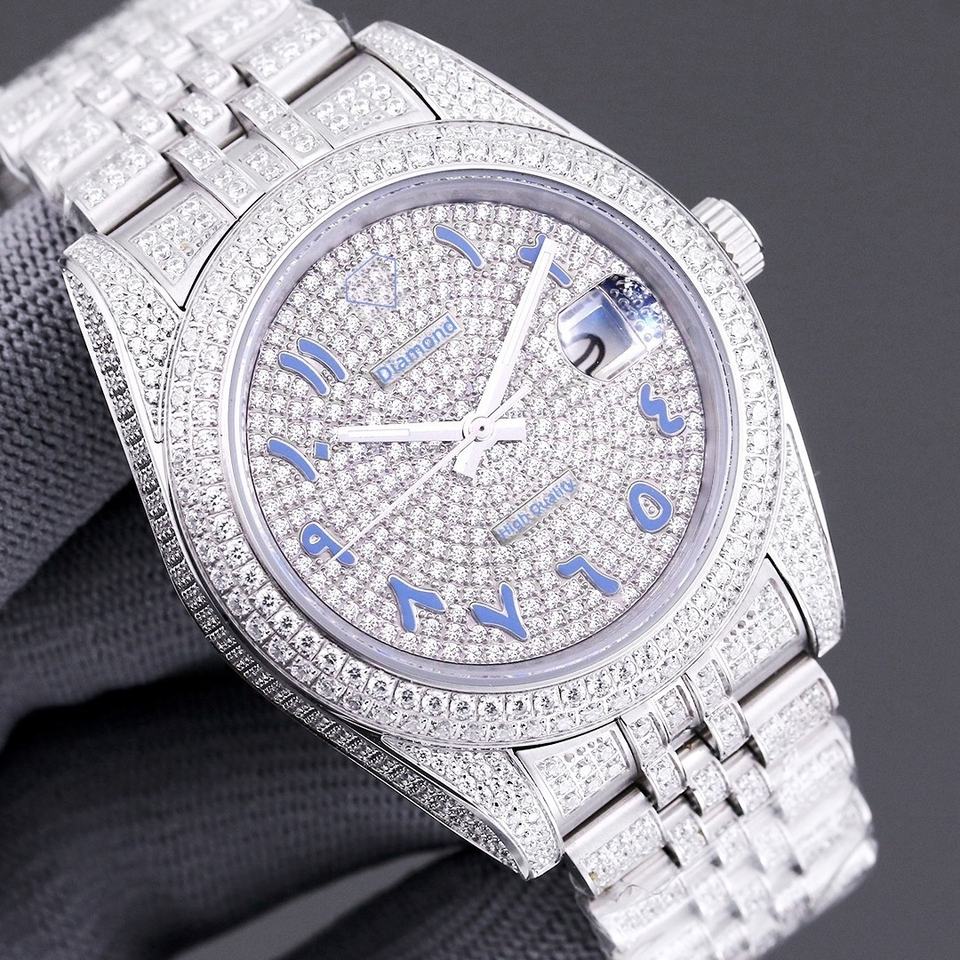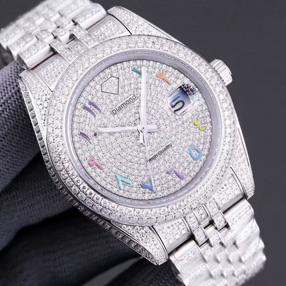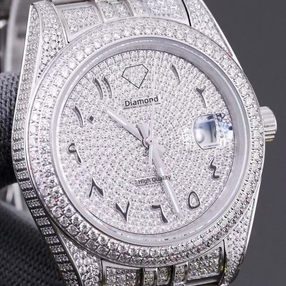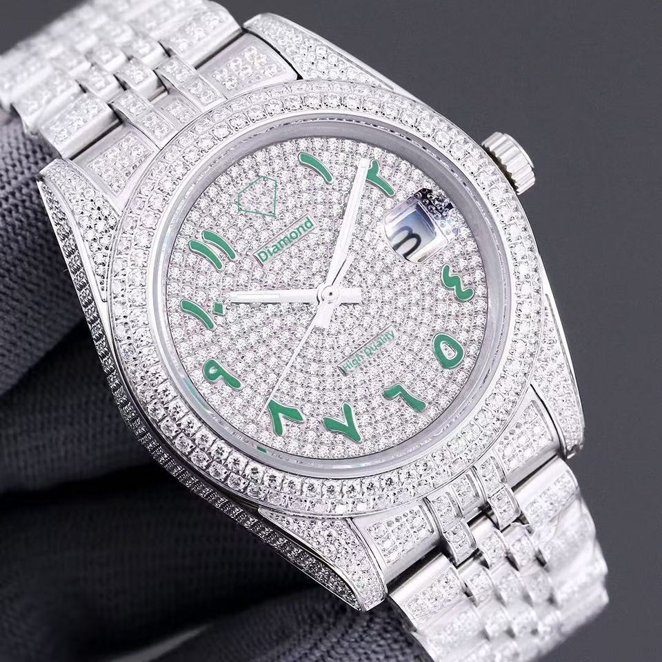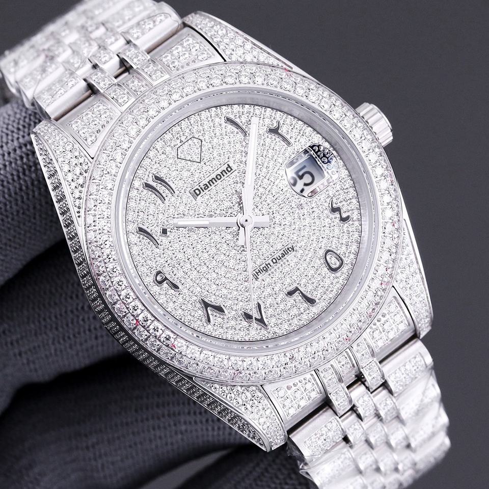 Men's Top-Tier VVS Moissanite Stainless Steel Band Mechanical Watch Luxury Fashion Business Waterproof Diamond-Inlaid Pointer