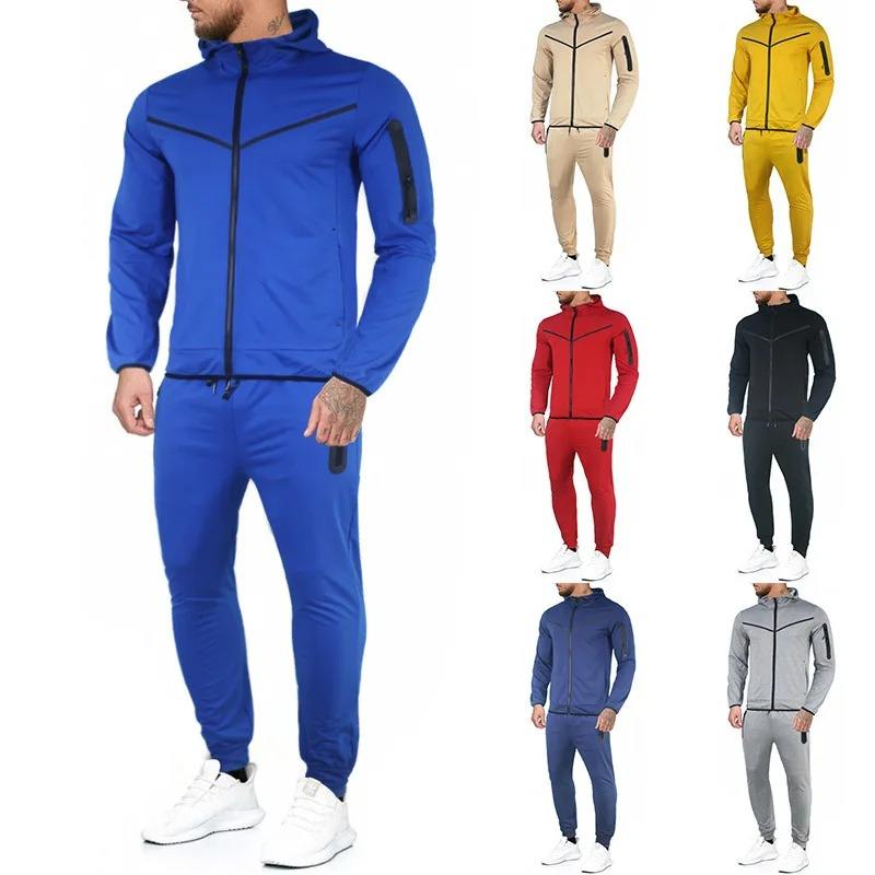 Men's Fashion 2-Piece Set Autumn Winter Outfits Hooded Zipper Jacket + Sweatpants Printed Fleece Workout Jogging Track Suits