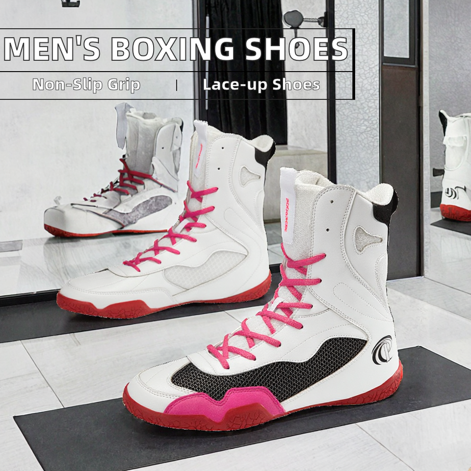 Men's Training Gym Wrestling Lace-Up PVC Boots All Weather Grip Shock Resistant Factory Wholesale Drop-Shipping Boxing Shoes