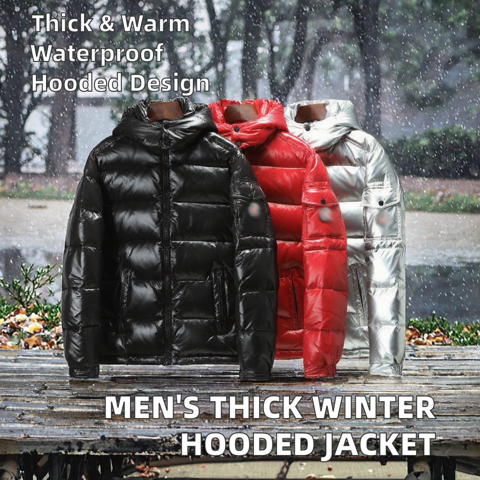 Men's Trendy Brand Winter Hooded Jacket for Autumn and Winter Waterproof Long Length Bright Face Thick & Stylish-Top Clothes