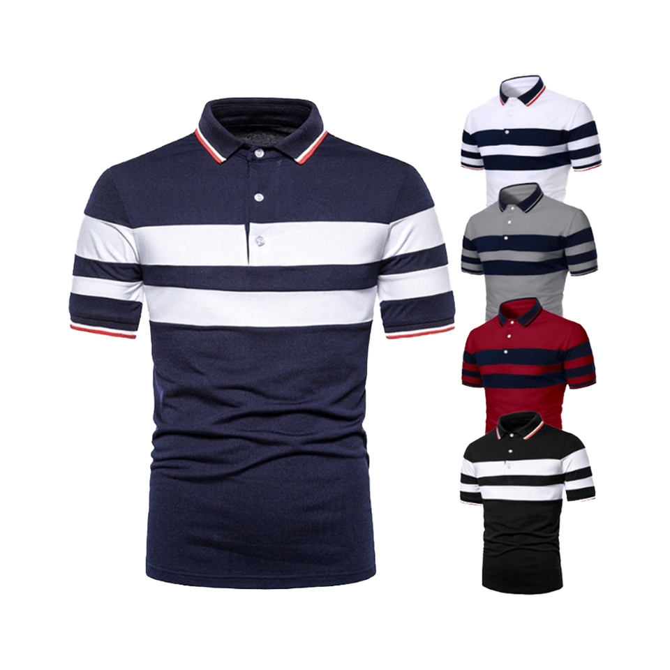 Men's Trendy Custom Anti-Wrinkle Knitted Quick Dry for Shirt 100% Cotton Premium Sports Short Sleeve Striped Print Casual Color
