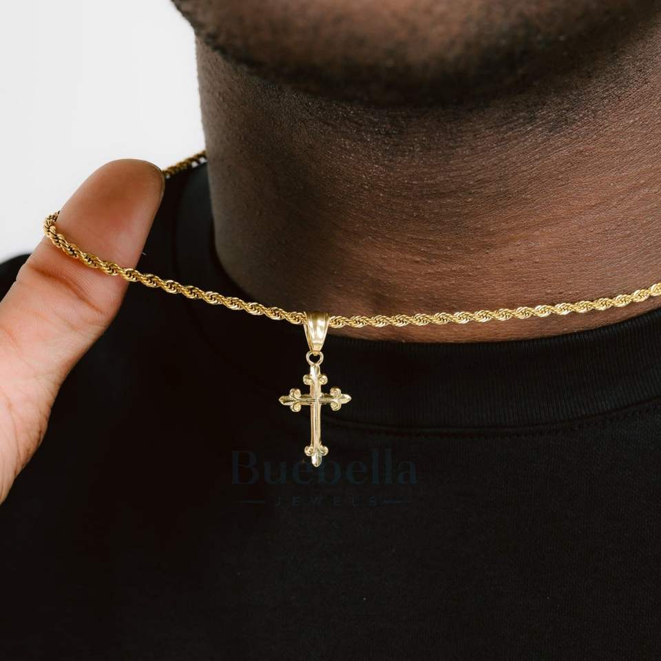 Men's Trendy Floral Cross Pendant Necklace 925 Silver 18K Gold Plated with Moissanite Fashionable Gift for Him