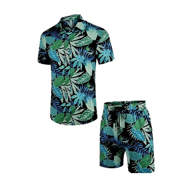 Men's Trendy High-Collar Vintage Floral Hawaiian Beach Shirt Short Set with DTF DTG Screen Digital Printing Sublimation