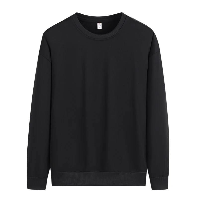 Men's Trendy Simple Imitation Cotton Hoodie Round Neck Long Sleeved Pullover Fashionable Base Shirt for Winter Digital Printing