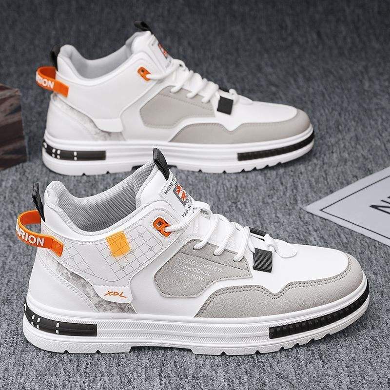 Men's Trendy Versatile White High-Top Sports Casual Sneakers Breathable Fashion Walking Style Shoes with Thick Sole New Design