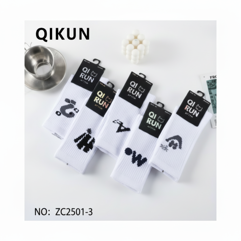 Men's Trendy White High Elasticity Socks Anti-Slip Breathable Polyester with Digital Printing for Daily Sporty Business Styles