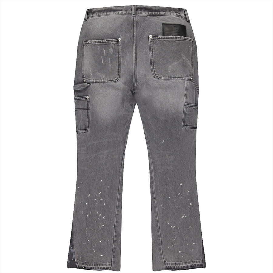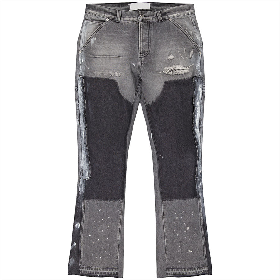 Men's Two-Tone Coated Woolen Stacked Flare Jeans Patched Ripped Slim Stretch Trousers Breathable Loose High Street Mid Flat