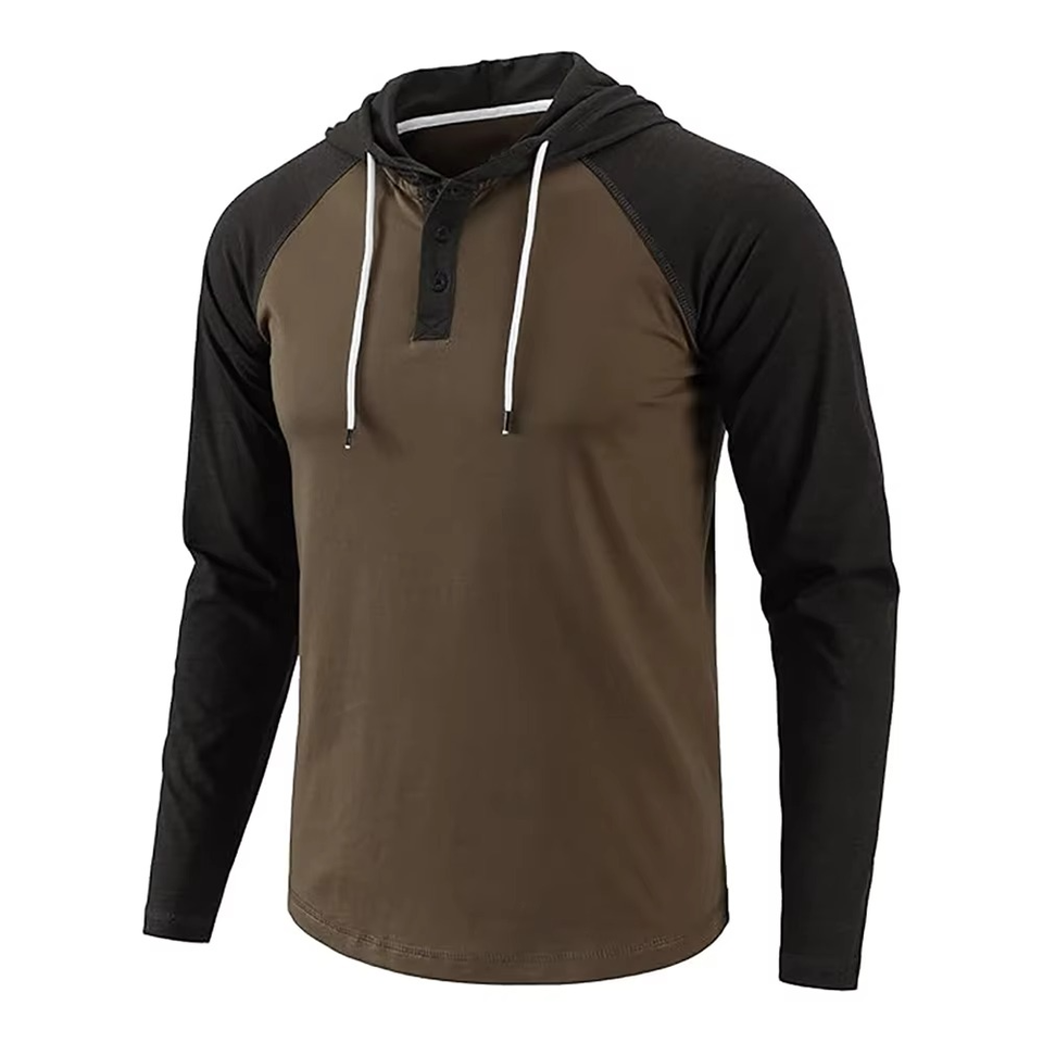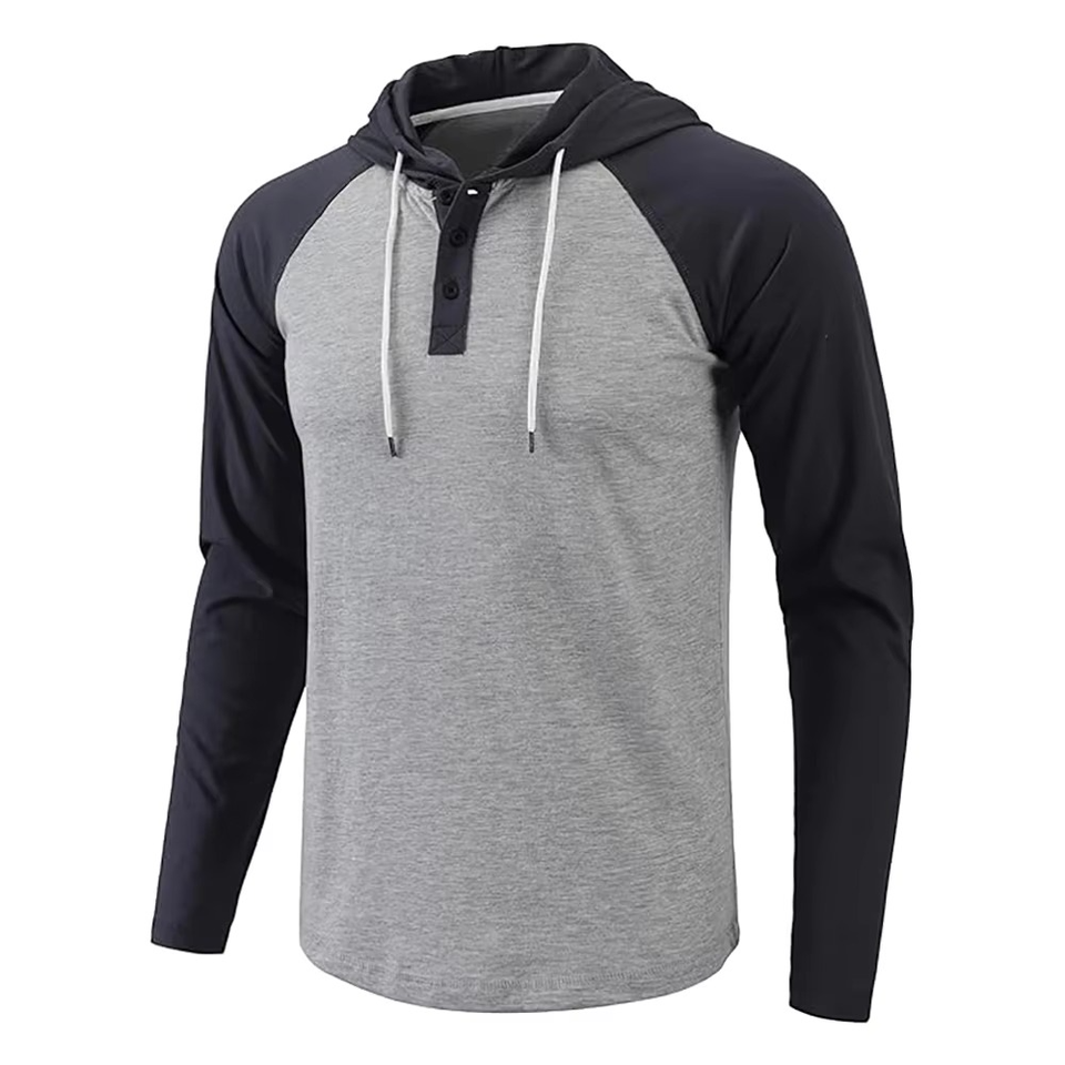 Men s Two Tone Long Sleeve Hoodie T Shirt Lightweight & Stylish Henley Design Cotton Fabric for Daily Use Plus Size Men's Shirts