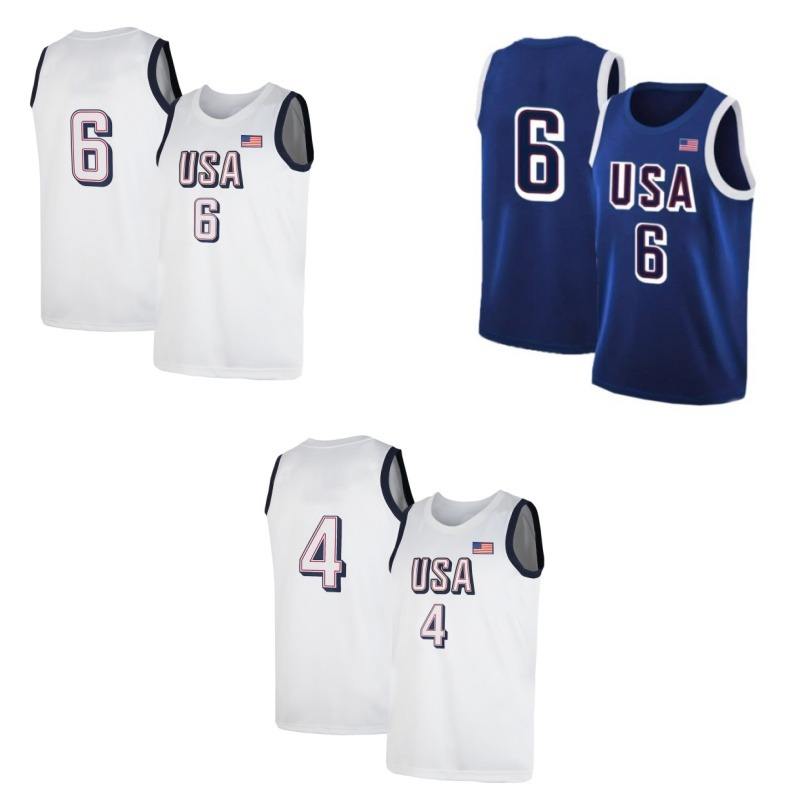 Men's USA 6 Embroidered Basketball Jersey Boyfriend Style Breathable Gym Tank Top 3D Sleeveless Sportswear Comfortable Men's