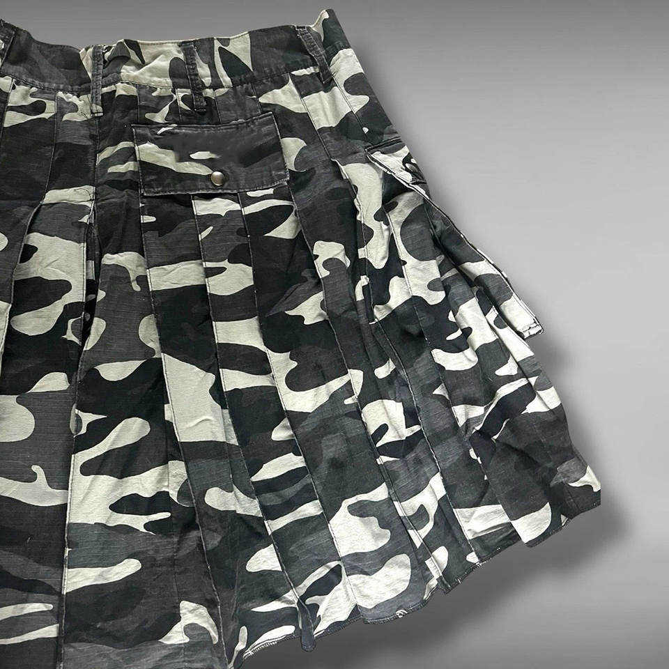Men's Urban Scottish Camouflage Cotton Utility Kilt with Cargo Pockets and Adjustable Straps