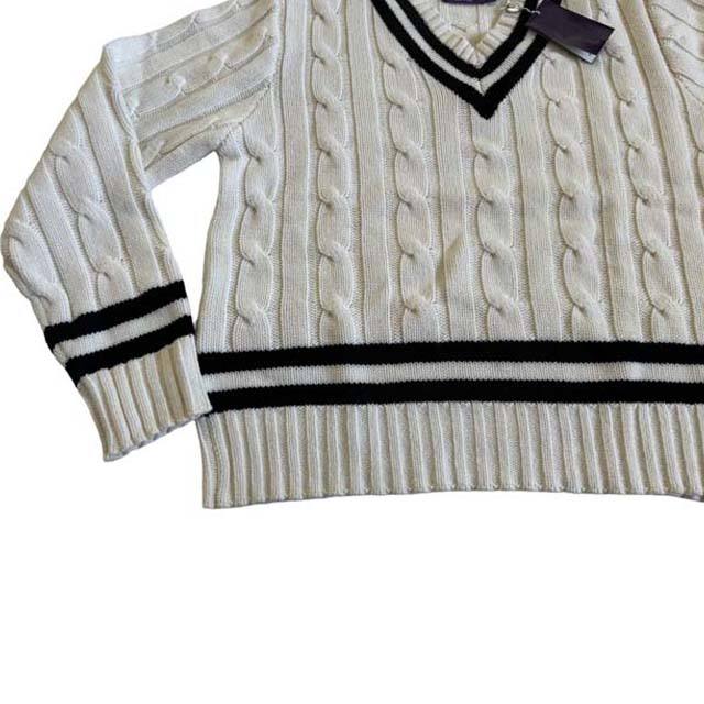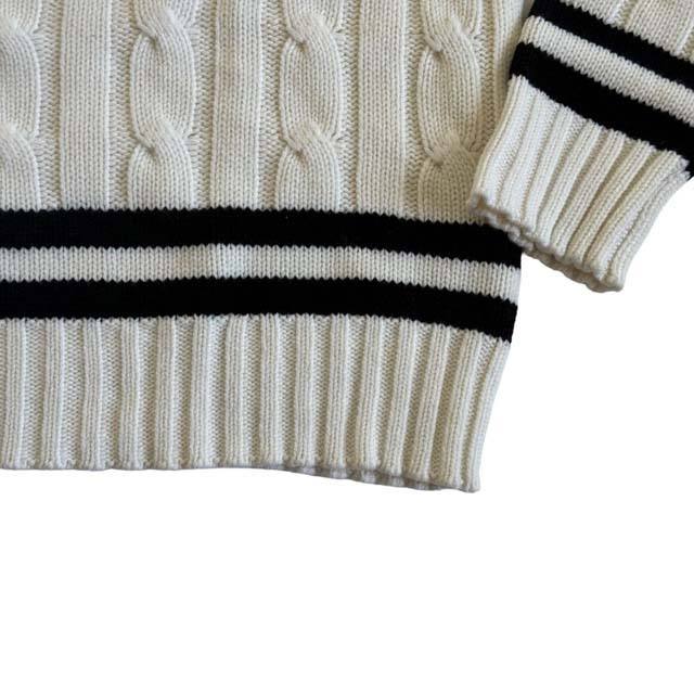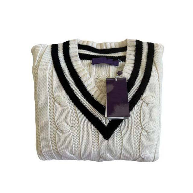 Men's V-Neck Embroidery 100%Cotton Wool Knit Cable Sweater Sportswear Adults Cricket Breathable Winter Striped Men's Sweaters
