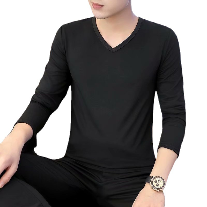 Men's V-neck long-sleeved T-shirt, slim fit, stylish and casual top
