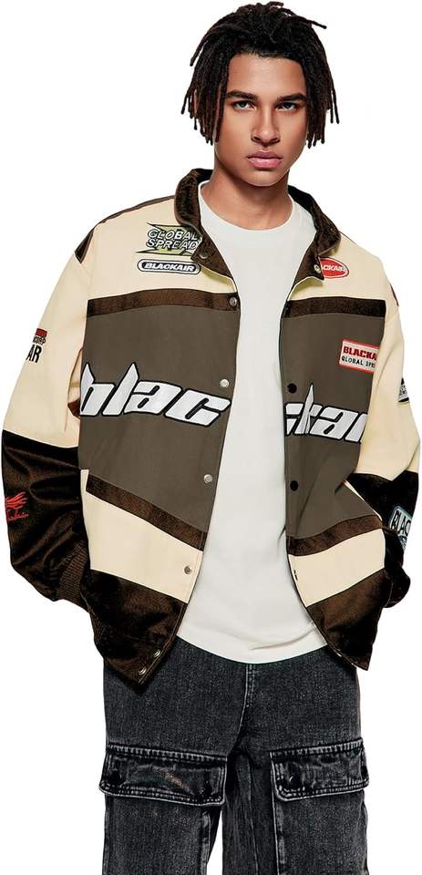 Unisex Vintage Letter Racer Oversized Baseball Bomber Jacket for Men Men's Varsity Coat Stand Collar College Streetwear Style