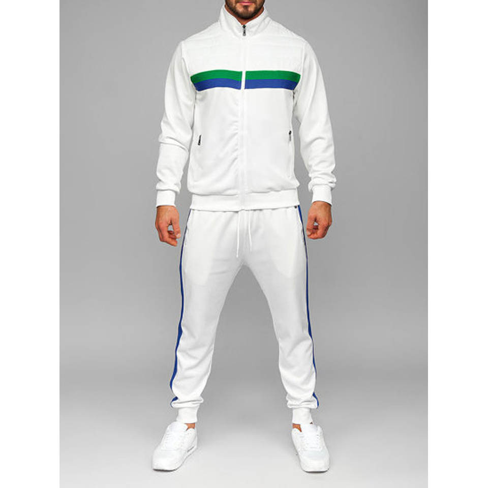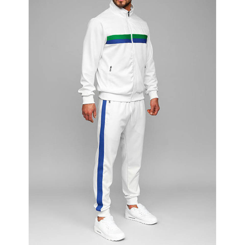 Men's Velour Tracksuit White Embroidered Plain Dyed Eco-Friendly Breathable Zipper-Up