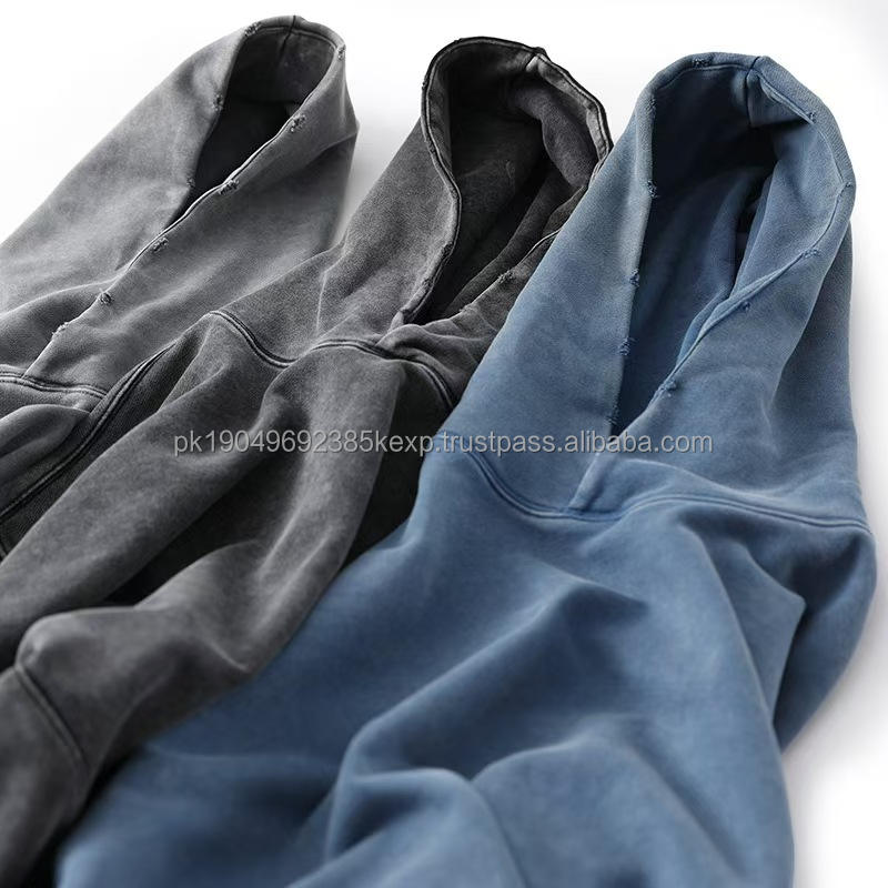 Men's Vintage Acid Wash Pullover Hoodie 450GSM Heavyweight High Quality 100% Cotton Custom Design Oversized Drop Cartoon