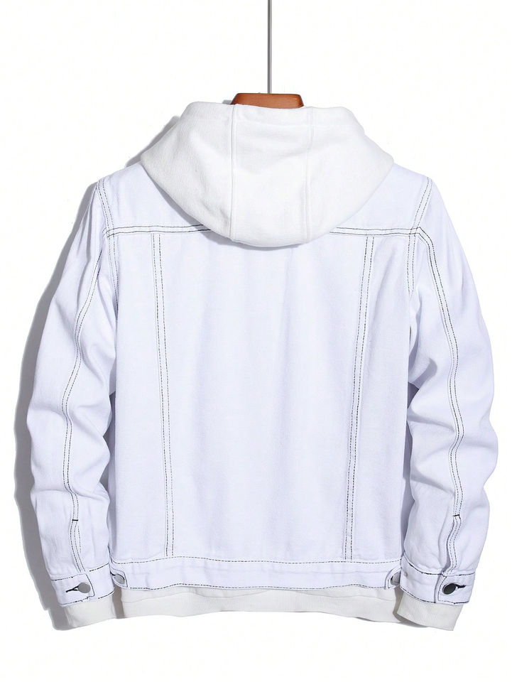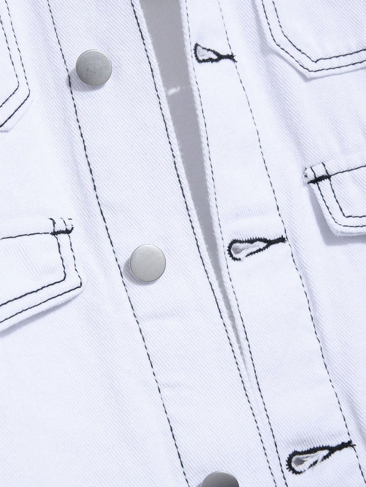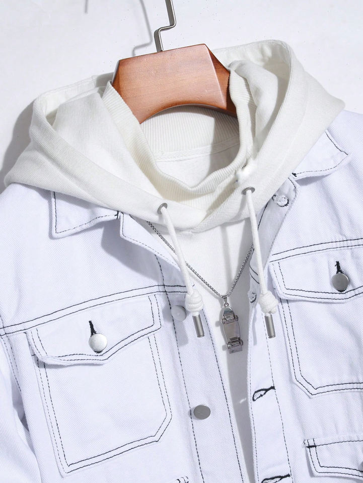 Men's Vintage Acid Wash White Cotton Denim Jacket Oversized Full Sleeve Casual Style Loose Fit Four Large Pockets Canvas Front